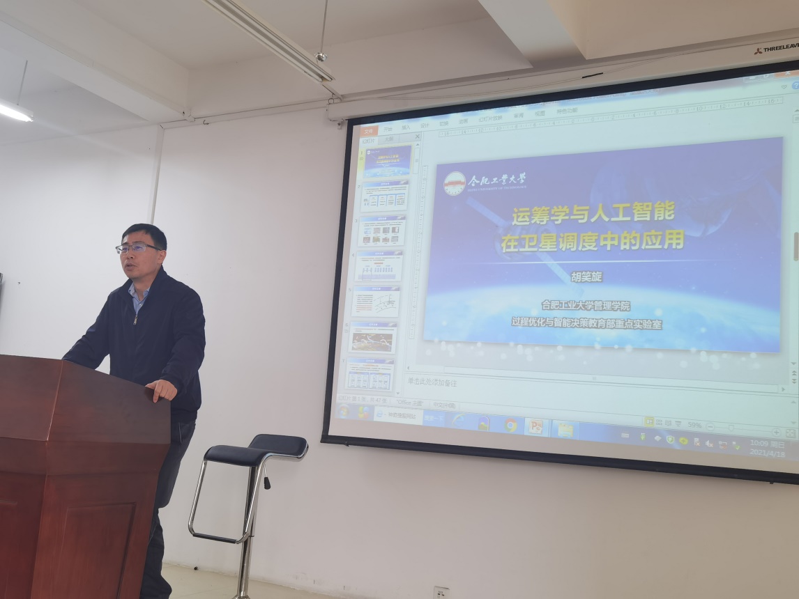 邀请合肥工业大学管理学院院长、博士生导师胡笑旋教授做了题为《运筹学与人工智能在卫星调度中的应用》的学术报告。院长汪和平、副院长王付宇、学院全体青年教师及研究生参加了报告会。