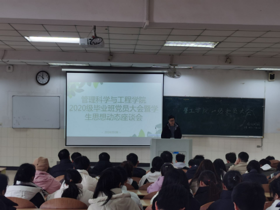 在阶教101召开2020级毕业班党员“1+N”服务就业动员会。会议由2020级辅导员杨金星、李军慧主讲,2020级全体党员参与。